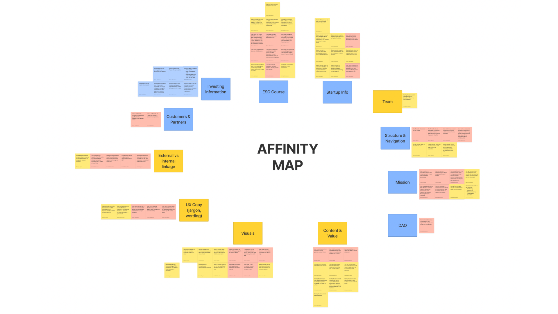 Putting the findings into affinity map, helped us to identify key user needs areas and consolidate according to website components. View details on FigJam.