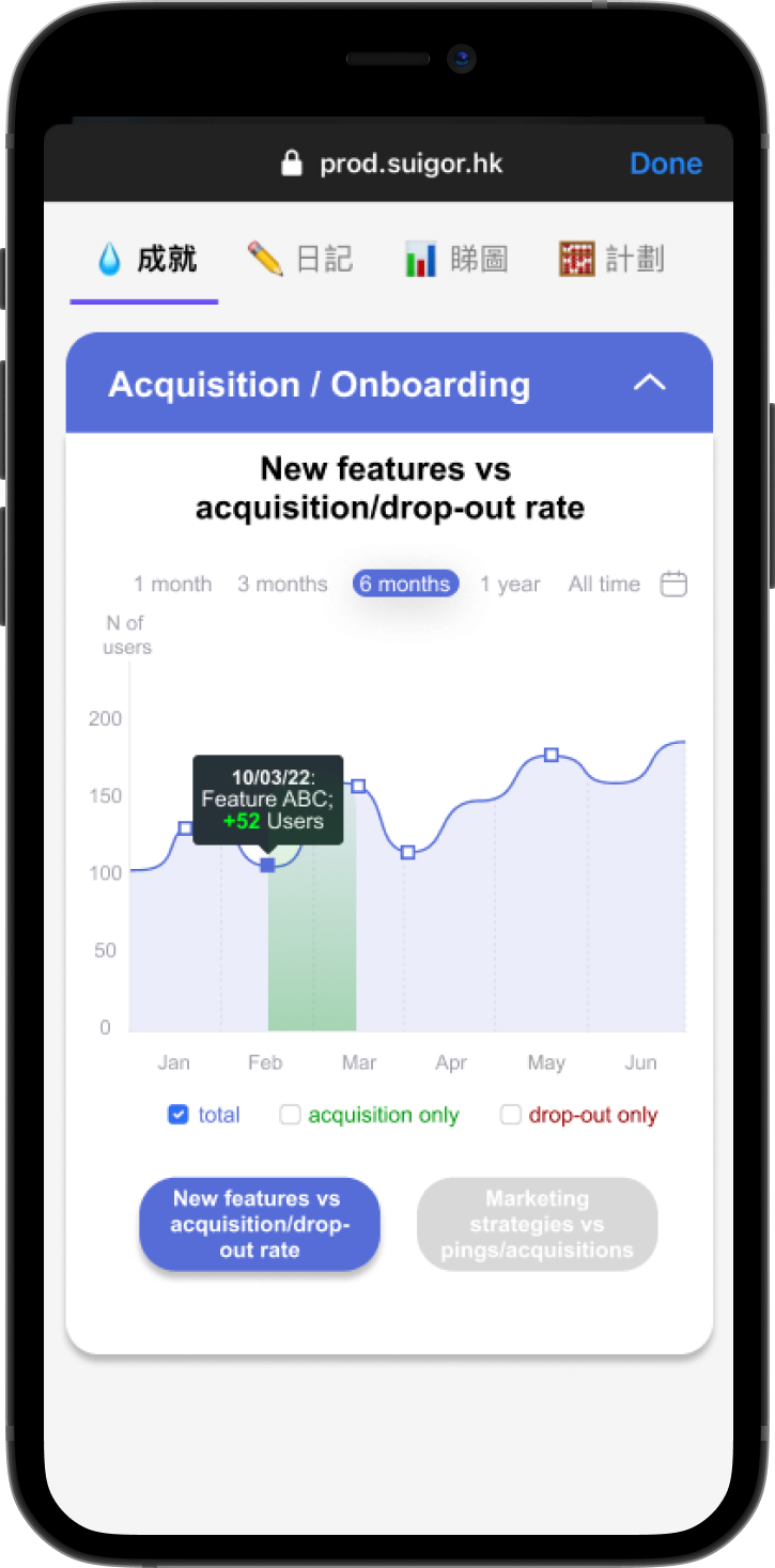 We started our project with brainstorming one of the new features - "SuiGor Points", that would increase product stickiness and new users acquisition through gamification.